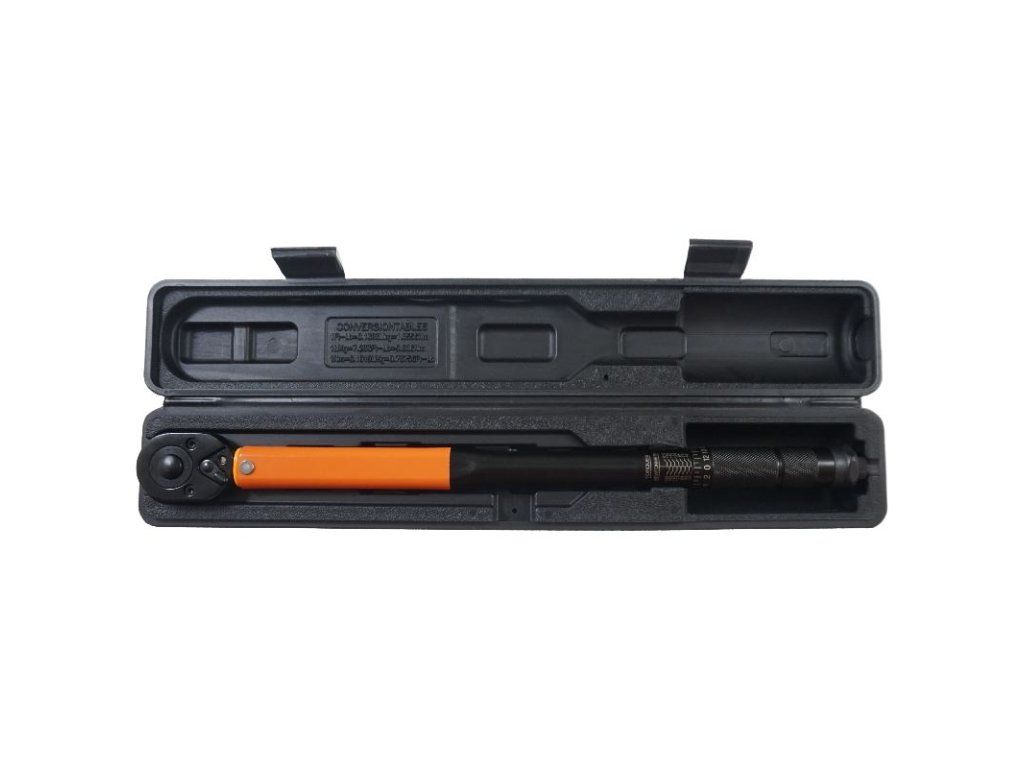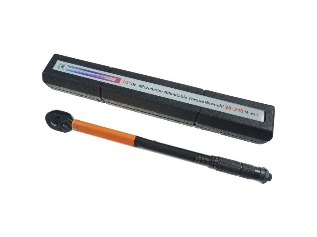 Klíč má čtvercový konec pro připojení 1/2" nástrčných hlavic. Nástroj má dlouhou rukojeť (460 mm), která umožňuje utahování šroubů krouticím momentem v rozmezí 28 až 210 Nm. Ráčna má přepínač pro ovládání zprava doleva.