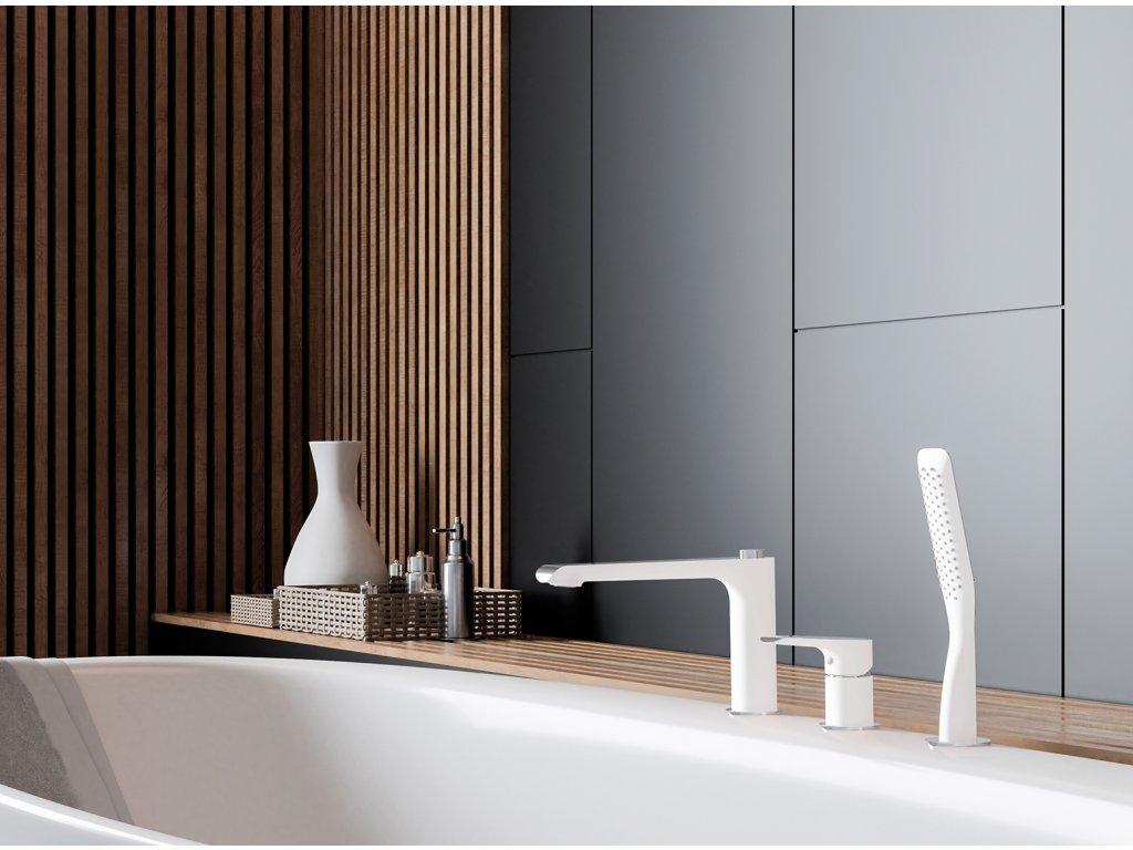 Alea - 3otvorová stojánkovová vanová baterie Bílá/chrom