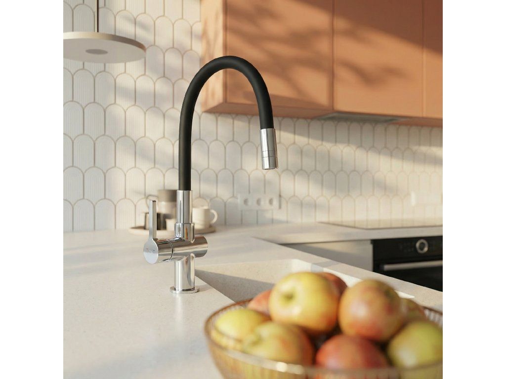 Alita – dřezová baterie s elastickou 2-funkční výlevkou, černá/chrom