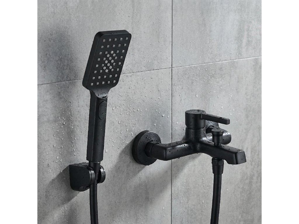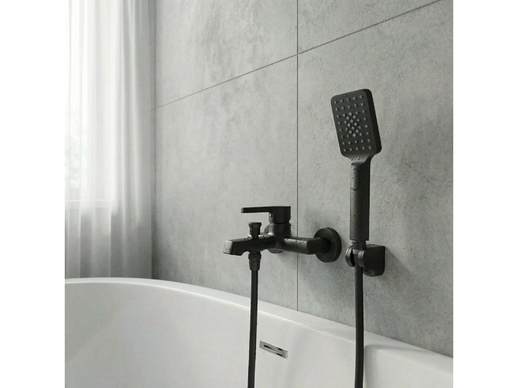 Alita – vanová nástěnná baterie se sprchovým setem, černá