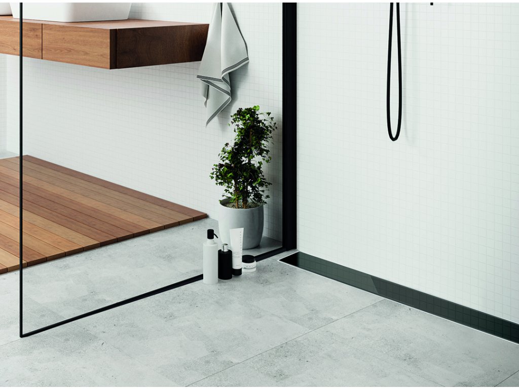Basso - nástěnný lineární odtok 80 cm Černé sklo