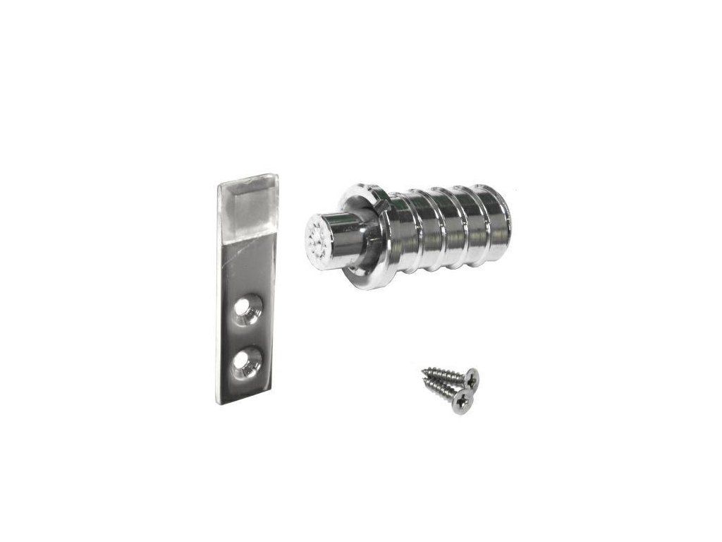 Ogranicznik Push Ventlock dedykowany do okien podnoszonych (przesuwnych w pionie) - kolor: chrom połysk W zestawie: - ogranicznik - płytka uderzeniowa - wkręty do montażu