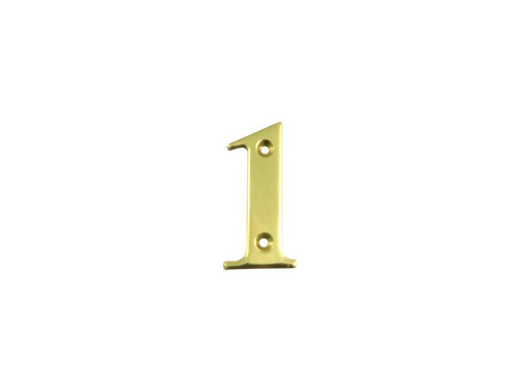 Číslice "1" mosazná lakovaná - materiál a povrchová úprava: mosaz lakovaný - výška: 50mm - tloušťka 1,5mm - způsob montáže: šroubovací (montážní vruty v sadě)Doplňkové parametry