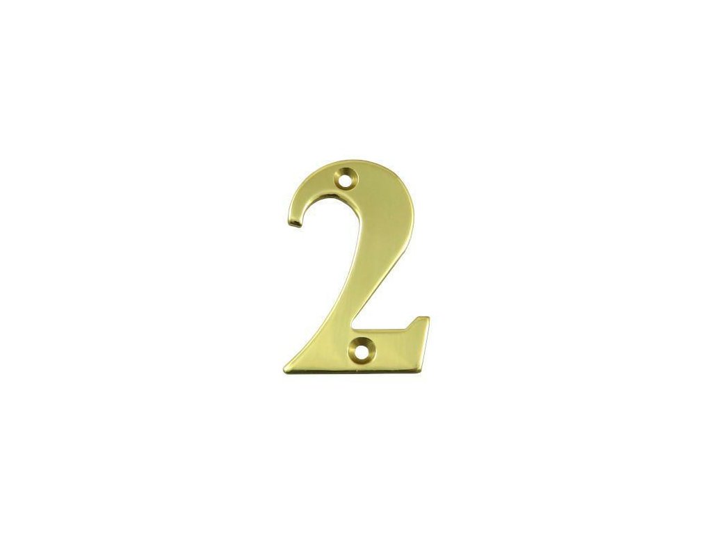 Číslice "2" mosazná lakovaná - materiál a povrchová úprava: mosaz lakovaný - výška: 50mm - tloušťka 1,5mm - způsob montáže: šroubovací (montážní vruty v sadě)Doplňkové parametry