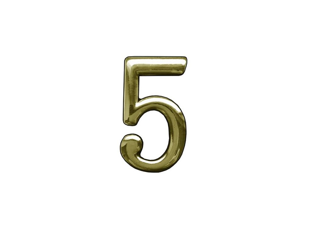 Cyferka 5 samolepicí - Rozměry: 55x32x5mm - Materiál: tworzywo sztuczne - Povrchová úprava: mosazowany z černou obrubouDoplňkové parametry