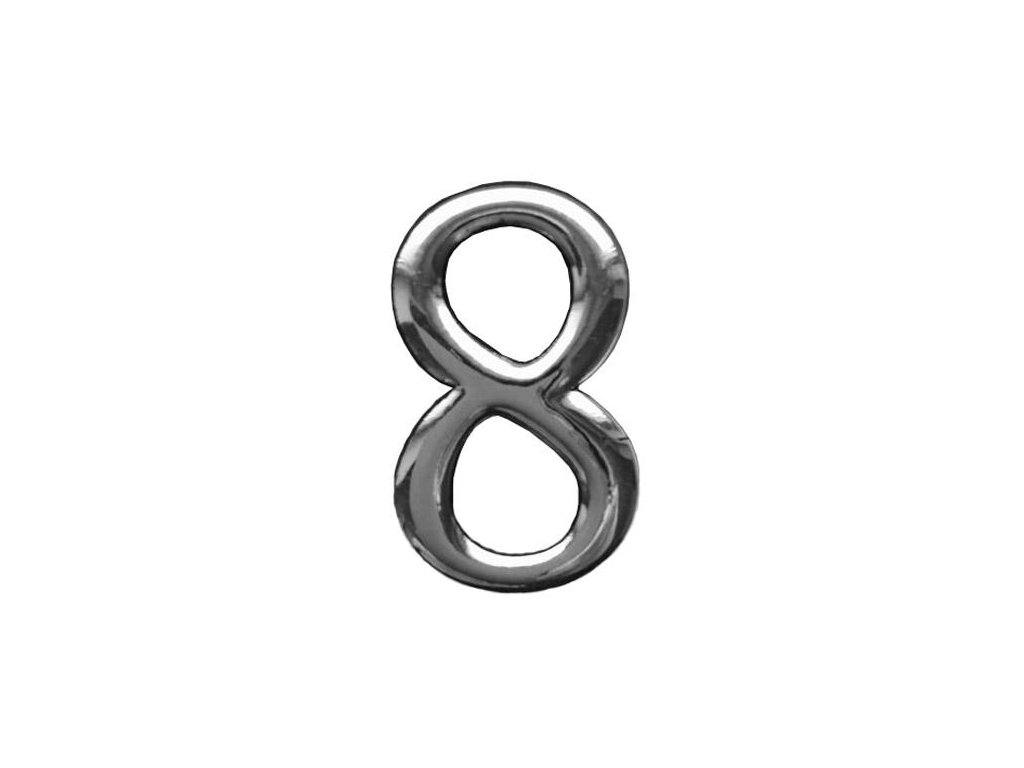 Cyferka 8 samolepicí - Rozměry: 55x34x5mm - Materiál: tworzywo sztuczne - Povrchová úprava: chromovaný z černou obrubouDoplňkové parametry