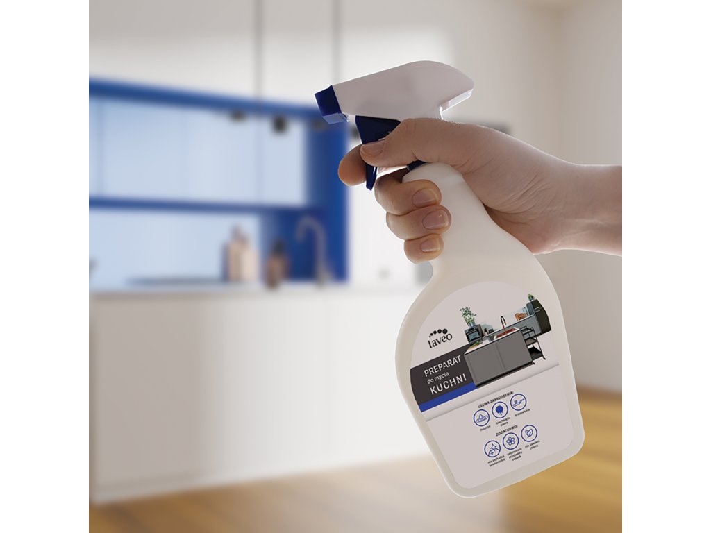 Výrobky značky Laveo jsou ideálním řešením pro údržbu sprchových koutů, zrcadel a skel, čištění kuchyně, mytí koupelny a čištění sprchových koutů, sprchových vaniček a van. Kuchyně a koupelna jsou místa, kde uklízíme nejčastěji. Velké plochy, které je třeba čistit, mnoho zákoutí a každodenní používání znamenají, že zářivá nebo dokonalá čistota vyžaduje mnoho úsilí a ještě více času. Aby tyto činnosti nebyly zátěží a spíše pobídkou k rychlému úklidu bez velké námahy, vyplatí se sáhnout po přípravcích, které nám umožní účinně bojovat se špínou a udržet efekt svěžesti po delší dobu. Značka Laveo připravila přípravky, které nám umožní dosáhnout požadovaného efektu. Najdeme mezi nimi jak čisticí prostředky pro kuchyňské prostory, tak i pro koupelnu. O naše dřezy můžeme pečovat pomocí přípravků na čištění ocelových dřezů, přípravků na čištění granitových dřezů a přípravků na údržbu granitových dřezů. Pro vodovodní baterie připravila značka Laveo dvě varianty: přípravky na čištění a péči o koupelnové a kuchyňské baterie a přípravky na čištění a péči o barevné baterie. Jedná se o účinné přípravky, které usnadní stékání vody z přípravků, zabrání vzniku skvrn a odstraní z povrchu usazeniny vodního kamene. Díky nim bude čištění rychlejší a účinnější a vaše kuchyně a koupelna budou déle zářit čistotou. Výrobky jsou nepostradatelné při každodenním úklidu a zaručují dlouhotrvající svěžest a čistotu.