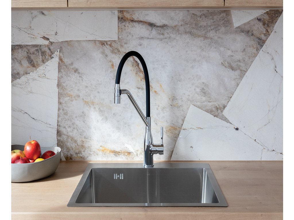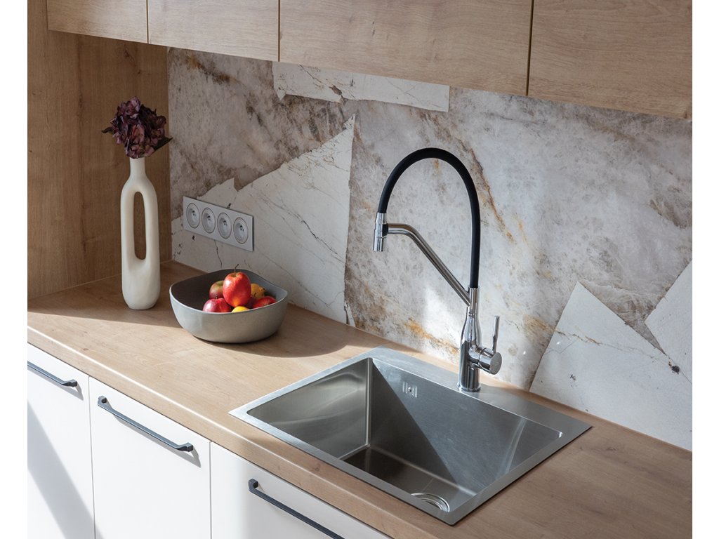 Kuchyňské baterie řady Colina od společnosti Laveo jsou harmonickou kombinací elegance, funkčnosti a moderních technologických řešení, navrženou s ohledem na každodenní pohodlí. Flexibilní výtoková trubice ve tvaru písmene U, upevněná na magnetu, umožňuje volný pohyb a usnadňuje oplachování ovoce, mytí nádobí a plnění velkých hrnců bez nutnosti jejich přemísťování. Díky možnosti montáže na stěnu a páce, která se pohybuje o 90° dopředu, je baterie Colina ideálním řešením pro prostorné i menší kuchyně. Baterie Colina je k dispozici ve třech módních barevných variantách, které lze snadno sladit s různými styly interiéru. Kombinace chromu a černé je klasickou variantou, která dodává eleganci a zdůrazňuje modernost - chrom přináší svěžest, zatímco matná černá dodává kuchyni moderní ráz. Pro milovníky minimalistického designu bude ideální volbou baterie v jednotném matném černém provedení, která se hodí do interiérů v loftovém, skandinávském a industriálním stylu. Naproti tomu grafitová barva je jemný kovový odstín, který vnáší do kuchyně nádech elegance a dokonale ladí s betonovými pracovními deskami, dřevěnými povrchy a matnými čely nábytku. Každá baterie řady Colina nabízí dva režimy proudu - pevný proud, ideální pro rychlé plnění nádobí, a dešťový proud pro jemné oplachování ovoce, zeleniny a choulostivého nádobí. Třída průtoku Z šetří vodu, zatímco technologie studeného startu snižuje spotřebu energie a zvyšuje bezpečnost uživatelů. Díky promyšlenému designu a snadné instalaci se baterie snadno a rychle instaluje. Osmiletá záruka poskytuje jistotu vysoké kvality a trvanlivosti, takže Colina je ideální volbou do každé moderní kuchyně.