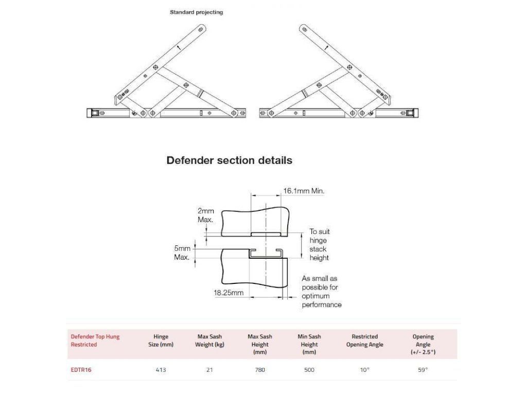 DEFENDER RESTRICTED 16" TOP HUNG HINGE