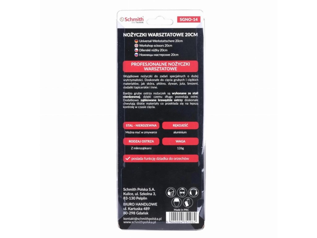 Wyjątkowe nożyczki o dużej wytrzymałości, idealne do zadań specjalnych. Doskonale sprawdzają się przy cięciu grubych i ciężkich materiałów, takich jak skóra, płótno, dywan, juta, brezent czy dodatki tapicerskie. Dzięki ząbkowanym krawędziom ostrzy zyskujesz pełną kontrolę nad cięciem nawet śliskich materiałów. Ostrza wykonane ze stali nierdzewnej są niezwykle trwałe i długo pozostają ostre. Nożyczki wyposażone są w aluminiową rękojeść, która zapewnia lekkość i wygodę pracy. Dodatkowo posiadają funkcję dziadka do orzechów, co czyni je wszechstronnym narzędziem w każdej kuchni i warsztacie.