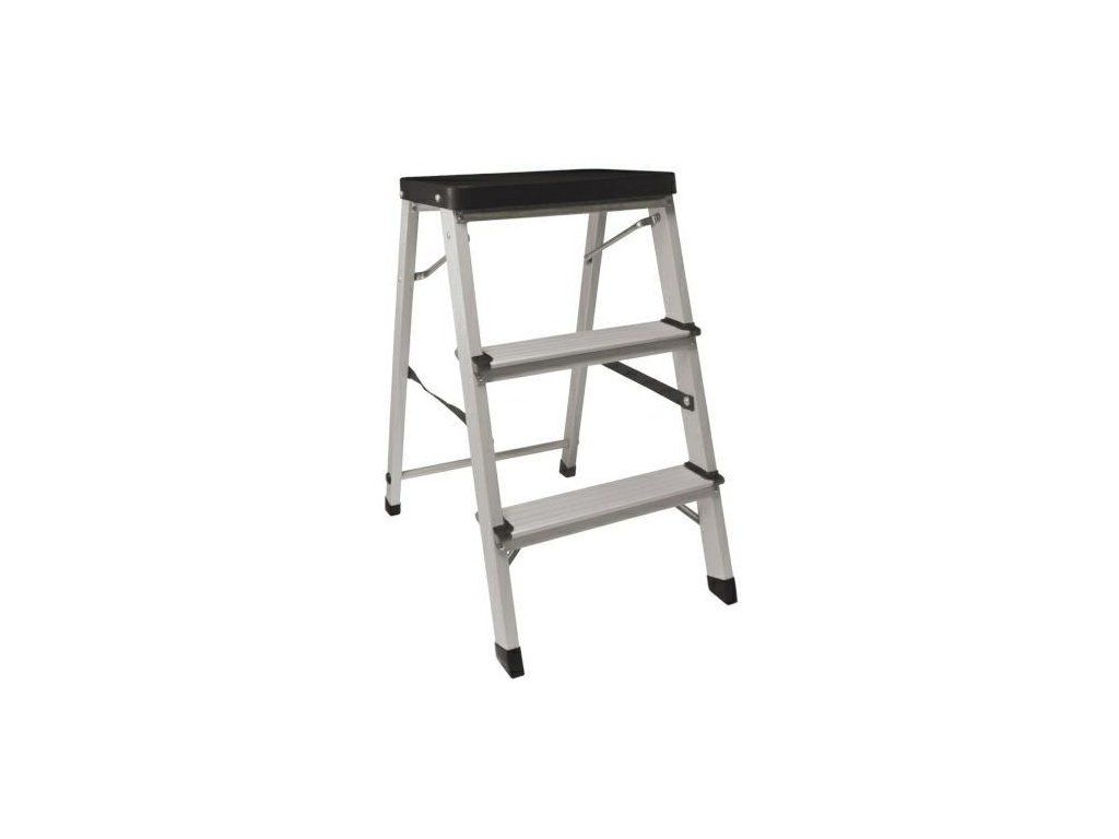 Drabinka 482-3 stopnie biała Składany stołek aluminiowy z antypoślizgowymi stopniami połączony solidnymi podwójnymi nitami. Zwiększona wytrzymałość i stabilność dzięki taśmie bezpieczeństwa i podwójnemu uchwytowi platformy. Maksymalne obciążenie: 120 kg. Rysunek TechnicznyDoplňkové parametry