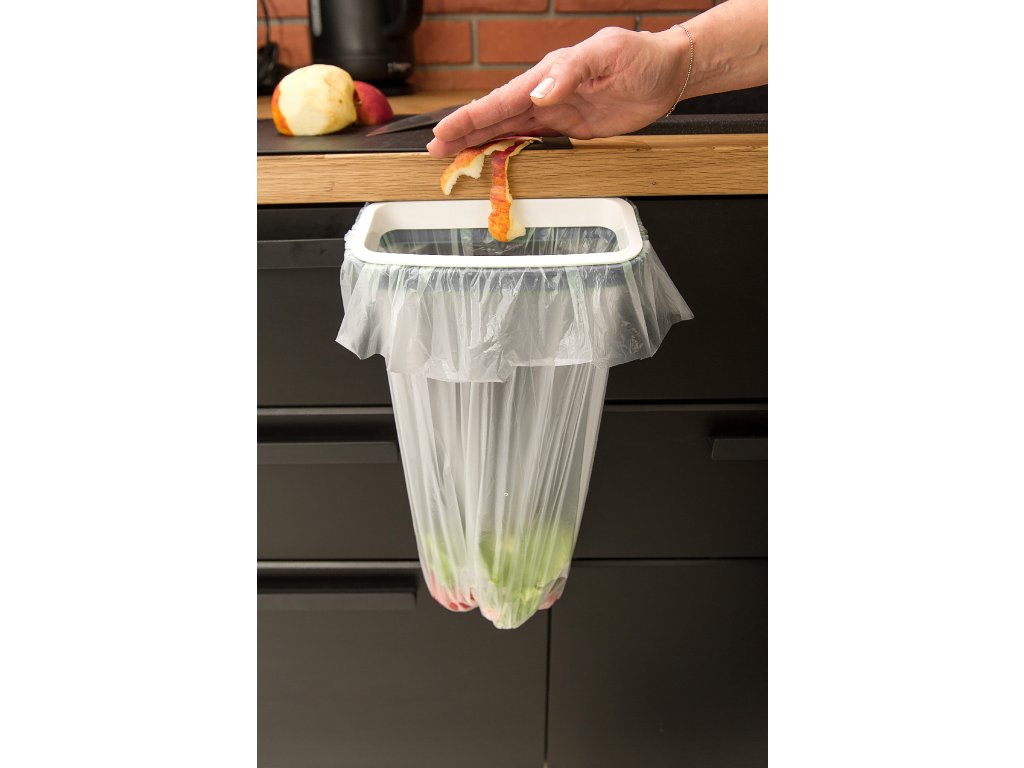 Podstavný držák na odpad je vyroben z plastu a je z vysoce odolného materiálu. Výrazně přispěje k usnadnění práce a udržení pořádku v kuchyni při přípravě pokrmů. Připevní se na dvířka kuchyňské skříňky s připevněným pytlem na odpadky a usnadní (bez nutnosti pokaždé otevírat koš) odkládání veškerého odpadu na pracovní desce do pytle. Jeho lehká konstrukce umožní zavěšení na dvířka nábytku podle potřeby bez použití nářadí