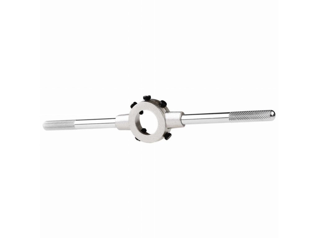 Držák knoflíkových matric M3-M4 Schmith je robustní nástroj pro přesné řezání vnějších závitů. Je vyroben v souladu s normou DIN 225 a zaručuje odolnost a spolehlivost při práci. Je vybaven chromovanými odšroubovanými rukojeťmi, které poskytují pohodlný úchop a usnadňují manipulaci se sekáčem. Držák knoflíkové dírky je vyroben ze slitiny ZINK-DRG, což dále zvyšuje odolnost nástroje.
