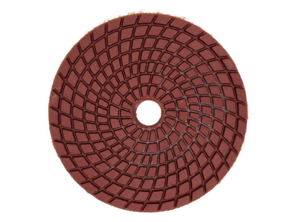 Diamentowy dysk polerski przeznaczony do polerowania i szlifowania na mokro kamieni naturalnych i sztucznych. Doskonale spisuje się przy szlifowaniu krawędzi płytek gresowych, glazury, terakoty, ceramiki, granitu i betonu. Mocowany przy pomocy mocnego rzepu, który umożliwia szybką wymianę dysku. Dedykowany do pracy z tarczę elastyczną z rzepem.