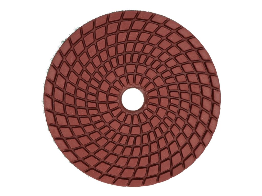 Diamentowy dysk polerski przeznaczony do polerowania i szlifowania na mokro kamieni naturalnych i sztucznych. Doskonale spisuje się przy szlifowaniu krawędzi płytek gresowych, glazury, terakoty, ceramiki, granitu i betonu. Mocowany przy pomocy mocnego rzepu, który umożliwia szybką wymianę dysku. Dedykowany do pracy z tarczę elastyczną z rzepem.