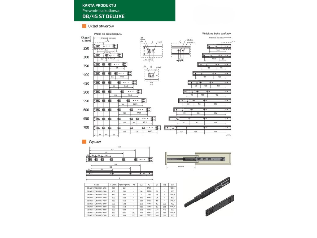 Plnovýsuv DTC 450 mm s dotahem a tlumením – nosnost až 35 kg, tichý chod, spolehlivý výkon pro každodenní použití. Výsuvy se prodávají pouze po celém balení 10 párů. Cena je za pár.