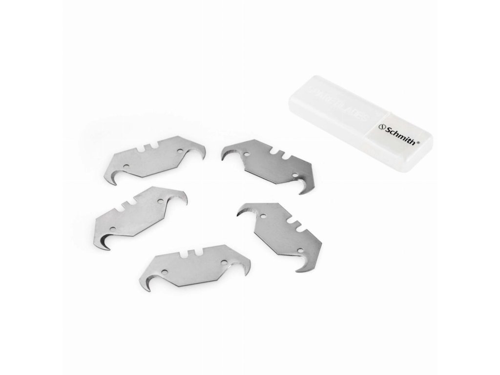 Komplet 5 ostrzy z zaostrzonymi, haczykowatymi końcówkami. Wykorzystywane do cięcia dużych powierzchni z miękkich materiałów np. linoleum, wykładziny itp.