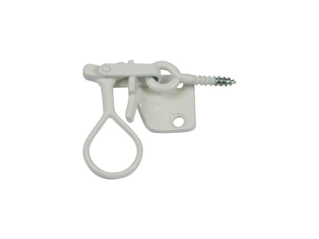 Haczyk zamknięcie z wkrętem oczkowym do okna otwieranego na zewnątrz Dane techniczne: - Materiał: stal - Wykończenie: białe - Wymiary płytki: 30x31mm - Długość: 55mm - Wymiary haczyka oczkowego: 5x40mmDoplňkové parametry