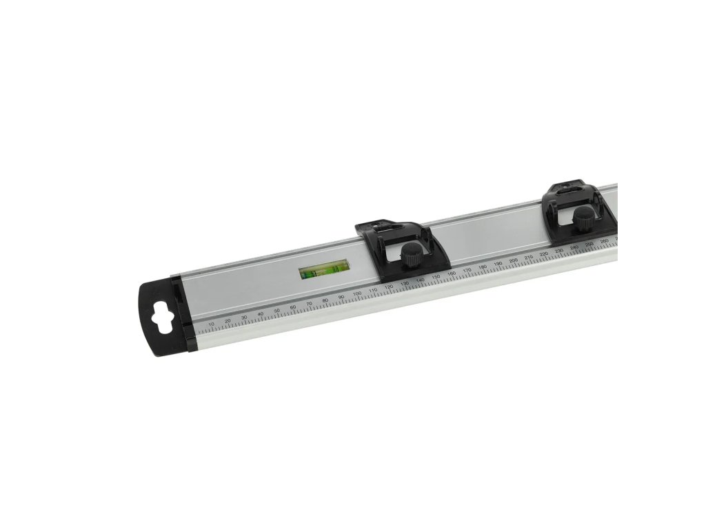 Hliníková měrka určená k rýsování a vytyčování přímek při dekoratérských, renovačních, stavebních a montážních pracích. Je vybaven pohyblivými posuvníky, libelami a přísavkami,