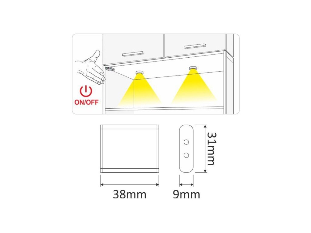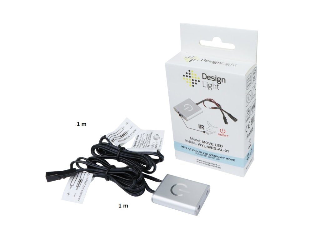 IR bezdotykový přibližovací vypínač MOVE pro LED je univerzální vypínač pro LED osvětlení. Osvětlení ovládá snímáním pohybu v oblasti cca 15 cm – první pohyb světlo zapne a druhý pohyb ho vypne.