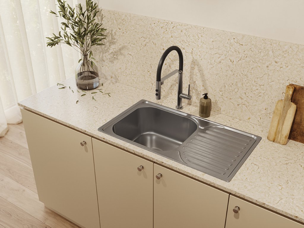 Kuchinox Orion jednokomorový dřez s odkapávačem – nerez hladký
