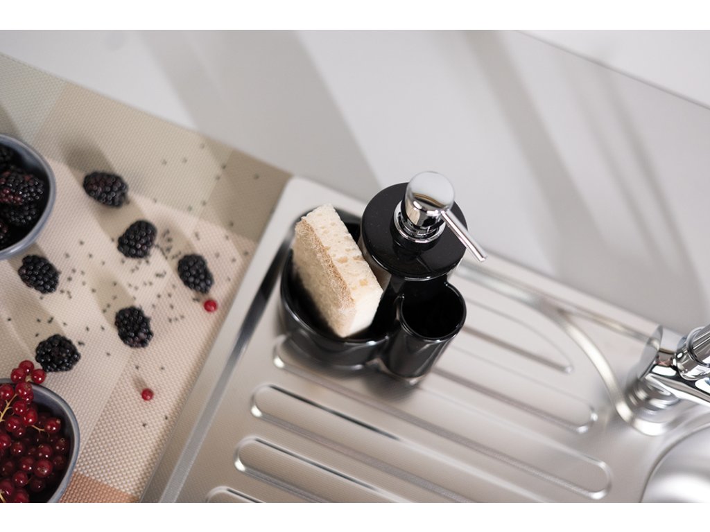 Zásobníky Lupo se vyznačují zajímavým tvarem - mají dvě zaoblené přihrádky pro uložení příslušenství k mytí nádobí. Chromované čerpadlo dávkuje konzistentní porci tekutiny, čímž optimalizuje spotřebu. Dávkovače Lupo jsou k dispozici ve třech provedeních: bílém, šedém a černém.