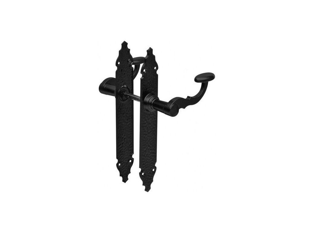 Komplet pięknych drzwiowych klamek w stylu retro, hiszpańskiej firmy AMIG, model: 100P - Wymiar szyldu: 280x44mm - Długość klamki 110mm - Wykończenie: czarny matowy - Materiał: zamak - Trzpień: 8mm - Dostarczane ze śrubami do montażu Rysunek Techniczny