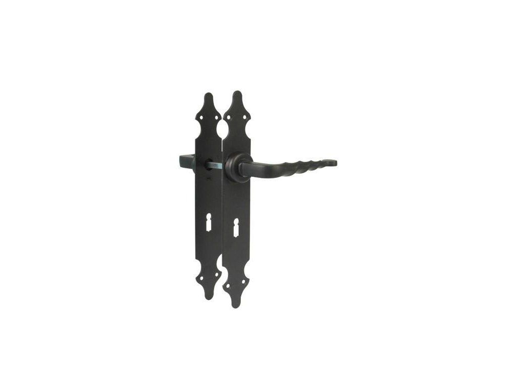 Komplet klamek z długim szyldem na klucz hiszpańskiej firmy AMIG, model 101PG - Rozstaw (odległość od osi klamki do osi obrotu klucza): 70mm - Wykończenie: czarna matowa - Klamki mają gładkie pokrycie i skręconą rękojeść - Rozmiar szyldu: 280x44mm - Dostarczane ze śrubami do montażu Rysunek Techniczny