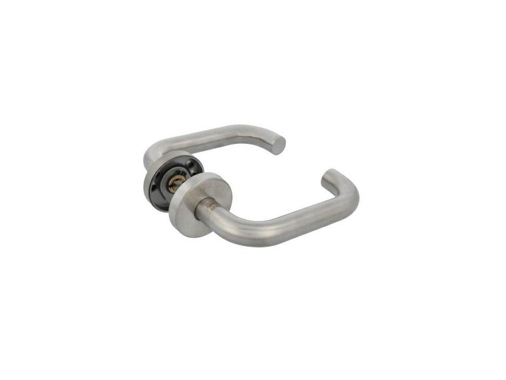 Komplet klamek ze stali nierdzewnej model: 3RX na okrągłych rozetach, firmy AMIG - Typ klamki tzw. bezpieczny - Materiał: stal nierdzewna (INOX) - Wykończenie: stal szczotkowana - Trzpień klamki: 8mm - Średnica rozety: 52mm - Rozstaw otworów montażowych: 38mm - Długość rękojeści: 139mm - Dostarczany z akcesoriami do montażu (śruby antywłamaniowe) Rysunek Techniczny