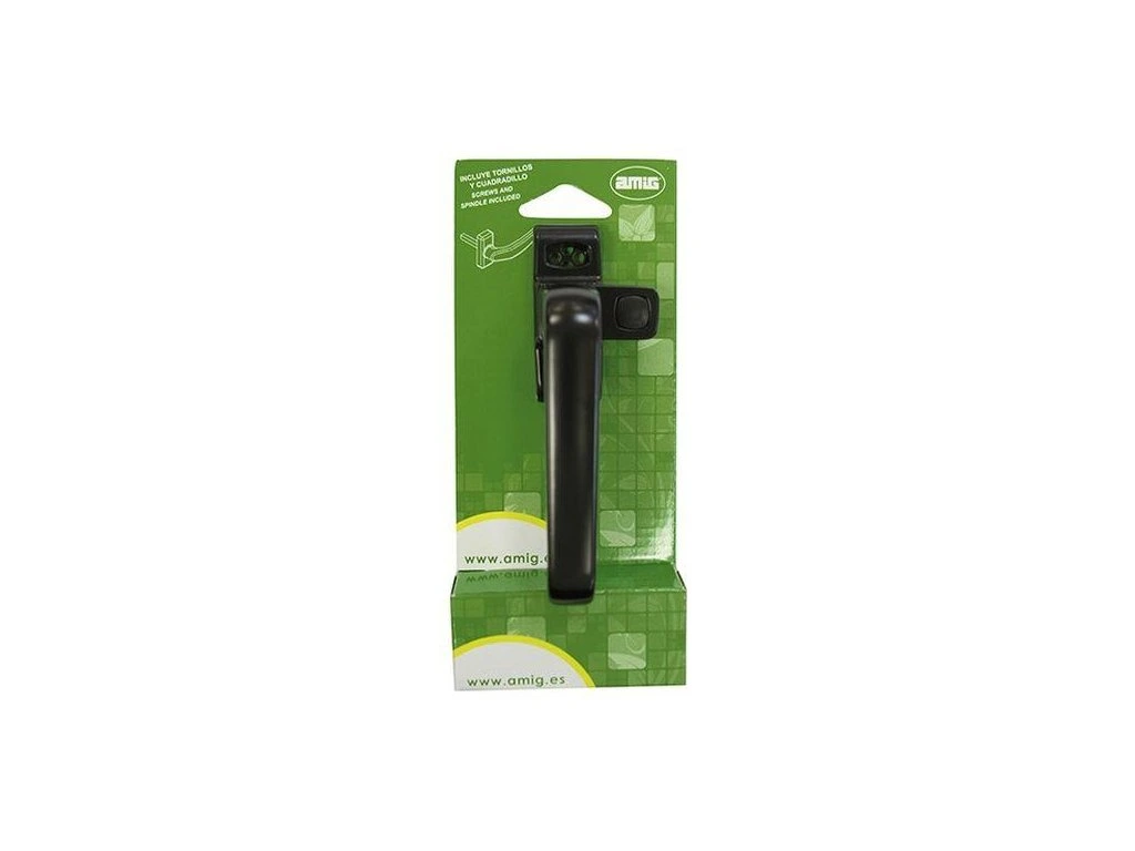 Okenní klika hliníková model GAMMA z jazýčkem (bez čtyřhranu) - Verze pravá - Materiál hliník - Barva: černý - V sadě protiplech - Rozteč montážních otvorů: 45mm - Délka kliky: 122mm Technický výkresDoplňkové parametry
