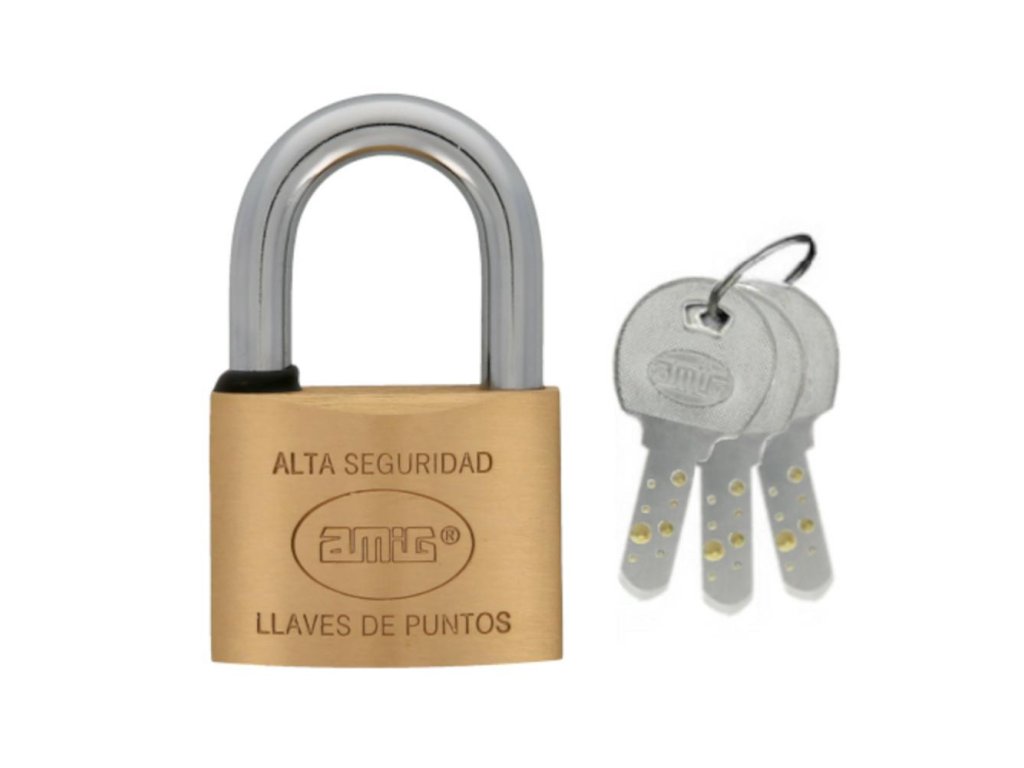 Mosazný visací zámek model 150 španělské firmy AMIGdisplay - Šířka: 50mm - Materiál a povrchová úprava: mosaz mat - Vodotěsný - Kalené ocelové prvky - V sadě: 3 ploché mosazné niklované klíče Visací zámek s vysokým stupněm zabezpečení vyrobený z masivní mosazi. Třmen ze zušlechtěné oceli pro vyšší odolnost proti přestřižení a páčení. Ochronna guma chránící przed vlhkostí. Dvojité uzamčení. Elementy vnitřní odporny na korozi. Dedykowany do použití na venku Viz technický výkresDoplňkové parametry
