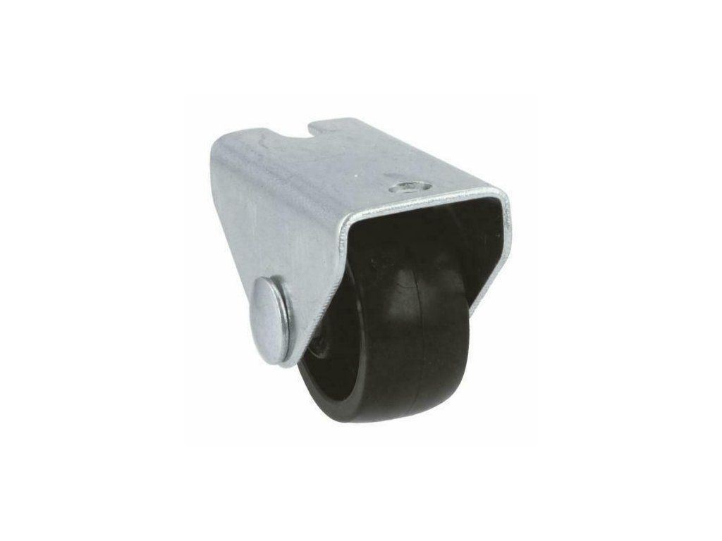 Kółko meblowe nylonowe na stałej płytce mod. 1300 - Płytka: stalowa cynkowana - Kółko: czarny nylon - Średnica kółka: 25mm - Szerokość kółka: 12mm - Wysokość całkowita: 29mm - Wymiary płytki: 19x40mm - Udźwig do 40kg