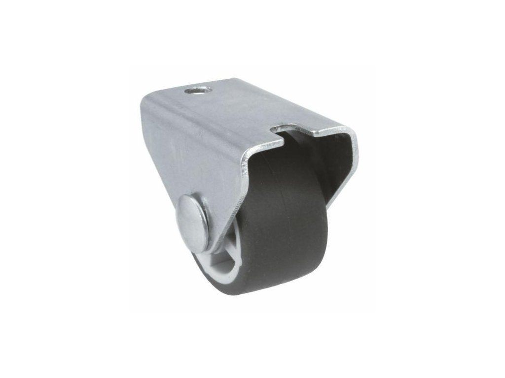 Kółko meblowe gumowe na stałej płytce mod. 1301 - Płytka: stalowa cynkowana - Kółko: szara guma - Felga: tworzywo sztuczne (PP) - Średnica kółka: 25mm - Szerokość kółka: 12mm - Wysokość całkowita: 29mm - Wymiary płytki: 19x40mm - Udźwig do 20kg