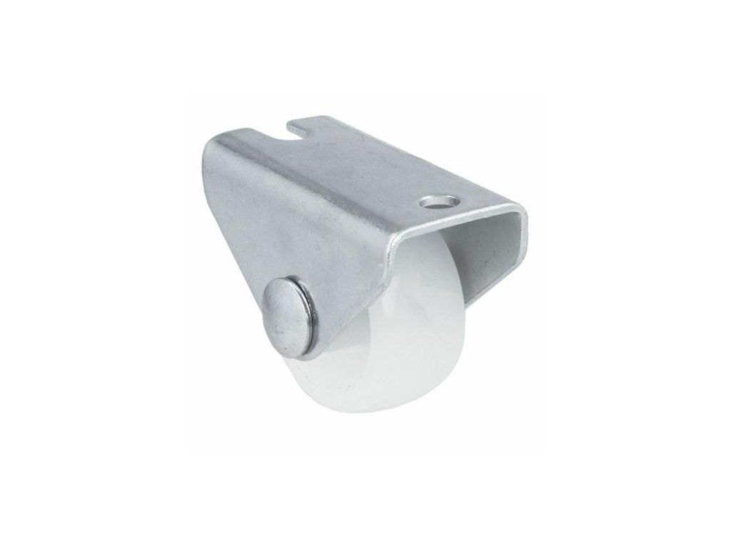 Kółko meblowe nylonowe na stałej płytkce mod. 1302 - Płytka: stalowa cynkowana - Kółko: biały nylon - Średnica kółka: 25mm - Szerokość kółka: 12mm - Wysokość całkowita: 29mm - Wymiary płytki: 19x40mm - Udźwig do 40kg
