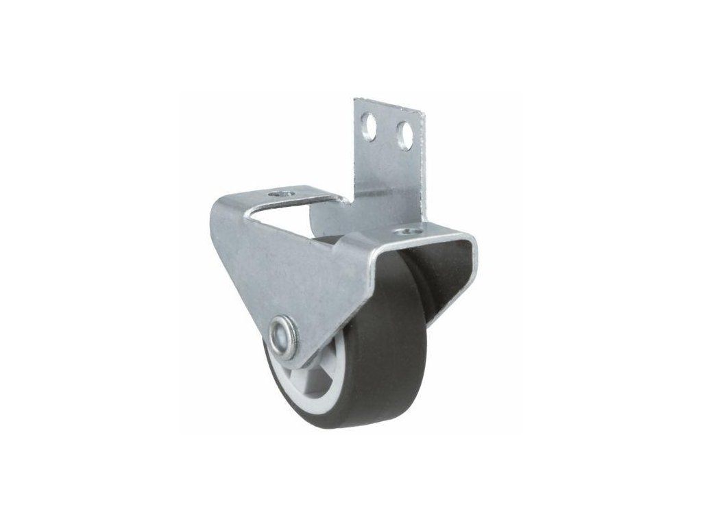Kółko meblowe, gumowe, na stałej płytce z bocznym mocowaniem mod. 1306 - Płytka: stalowa cynkowana - Kółko: szara guma - Felga: tworzywo sztuczne (PP) - Średnica kółka: 30mm - Szerokość kółka: 14mm - Wysokość całkowita: 48mm - Wymiary płytki: 20x46mm - Udźwig do 45kg