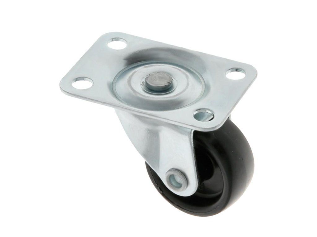 Kółko meblowe, nylonowe na obrotowej płytce mod. 1308 - Płytka: stalowa cynkowana - Kółko: czarny nylon - Średnica kółka: 30mm - Szerokość kółka: 13mm - Wysokość całkowita: 38mm - Wymiary płytki: 48x33mm - Udźwig do 45kg - Sposób mocowania: na śruby - Polecane do mebli domowych i biurowych