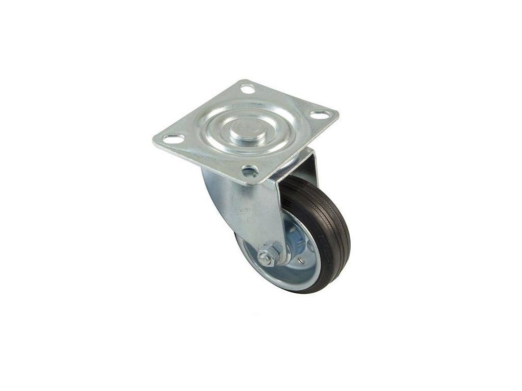 Kółko z gumową oponą, na łożyskach, z obrotową płytką, model 2522 hiszpańskiej firmy Amig - Średnica kółka: 80mm - Wysokość całkowita: 112mm - Szerokość kółka: 32mm - Udźwig: do 70kg - Wymiary płytki: 100x80mm - Metalowa felga - Gumowa opona - Na łożyskach