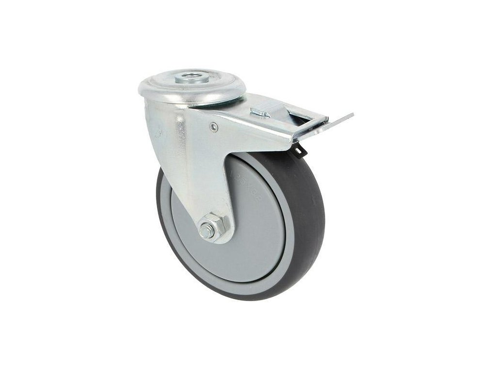 Kółko model 2531 z hamulcem hiszpańskiej firmy Amig - Średnica kółka: 100mm - Wysokość: 127mm - Szerokość kółka 32mm - Udźwig: do 110 kg - Średnica otworu: 12,5mm - Opona z szarej termoplastycznej gumy - Felga z polipropylenu - Metalowa płytaDoplňkové parametry