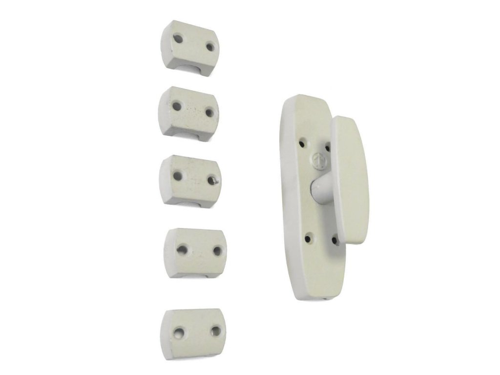Okenní klika typu Cremone, pro francouzská okna, s protiplechy - Barva: základní nátěr připravený k natírání - Materiál: litina - V sadě: * 1 klika * 5 protiplechů Určeno pro tyče o rozměrech 16×8mm Tyč není součástí sady - tyče různých délek jsou dostupné v naší nabídce.Doplňkové parametry