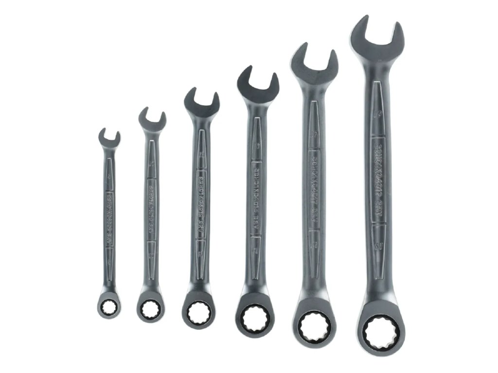 Komplet kluczy płasko-oczkowych z grzechotką, która umożliwia manewrowanie w wąskich przestrzeniach. Zestaw sprawdzi się wyśmienicie przy wykonywaniu prac serwisowych. Mechanizm grzechotki pozwala na szybkie dokręcani i odkręcanie śrub i nakrętek, bez potrzeby zdejmowania z nich klucza.