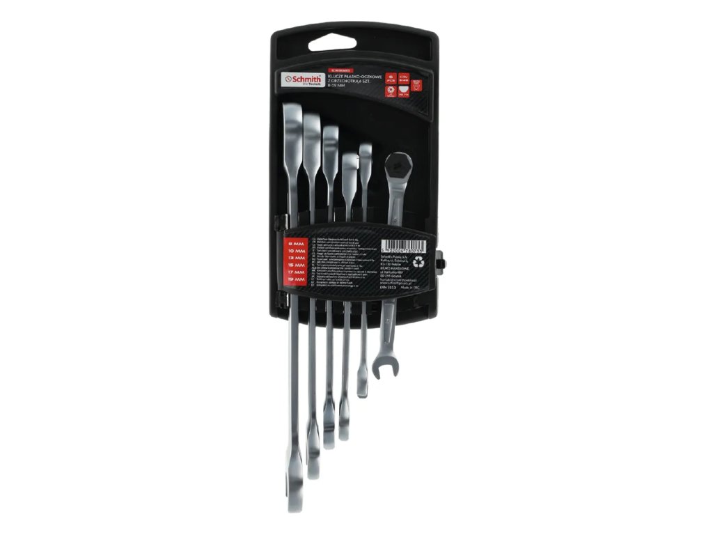 Komplet kluczy płasko-oczkowych z grzechotką 8-19mm Schmith