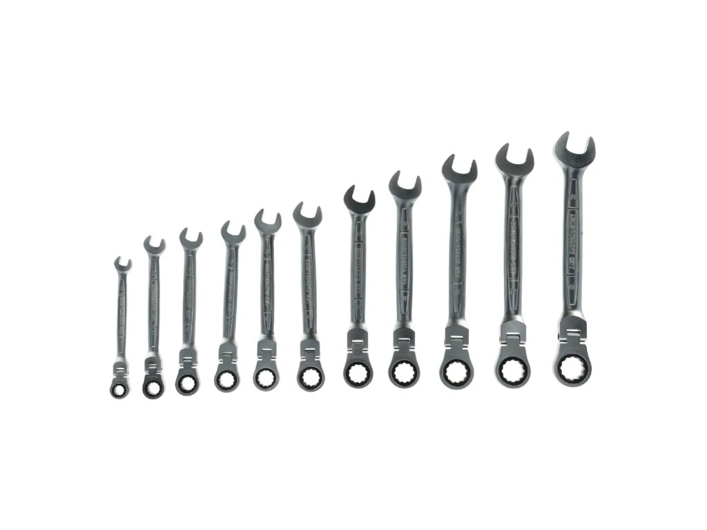 Komplet kluczy płasko-oczkowych z grzechotką i przegubem 8-19mm 11 szt.