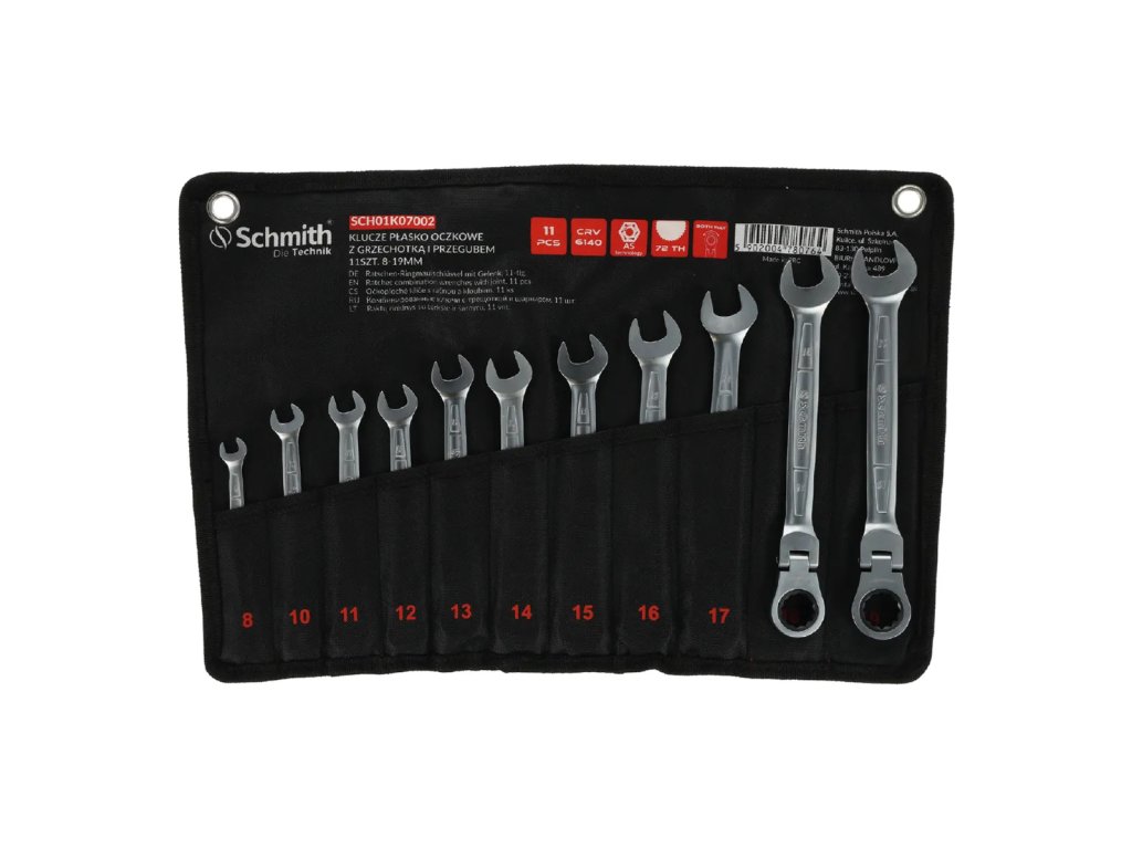 Komplet kluczy płasko-oczkowych z grzechotką i przegubem 8-19mm 11 szt. Schmith