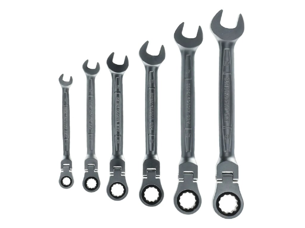 Komplet kluczy płasko-oczkowych z grzechotką i przegubem 8-19mm 6 szt.