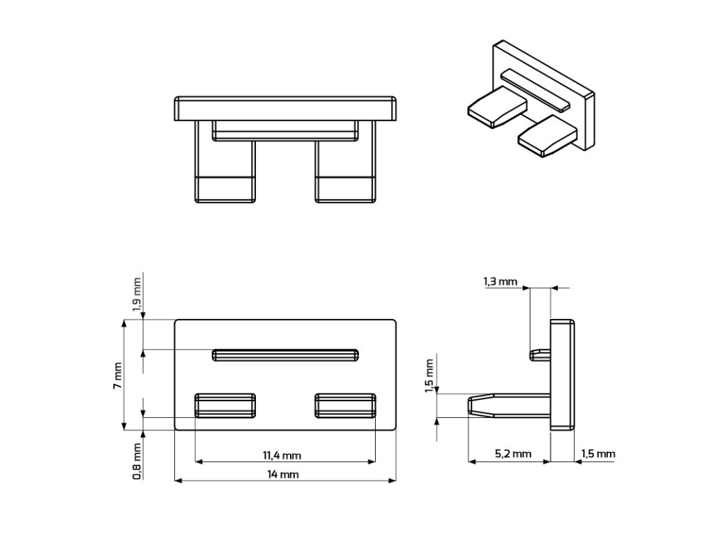 Koncovka (záslepka) s otvorem pro profil LINE MINI je doplněk, který se nasazuje na konce profilu LED. Slouží jako ukončovací prvek pro čisté a estetické zakončení instalace.