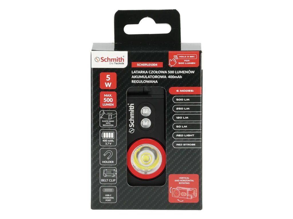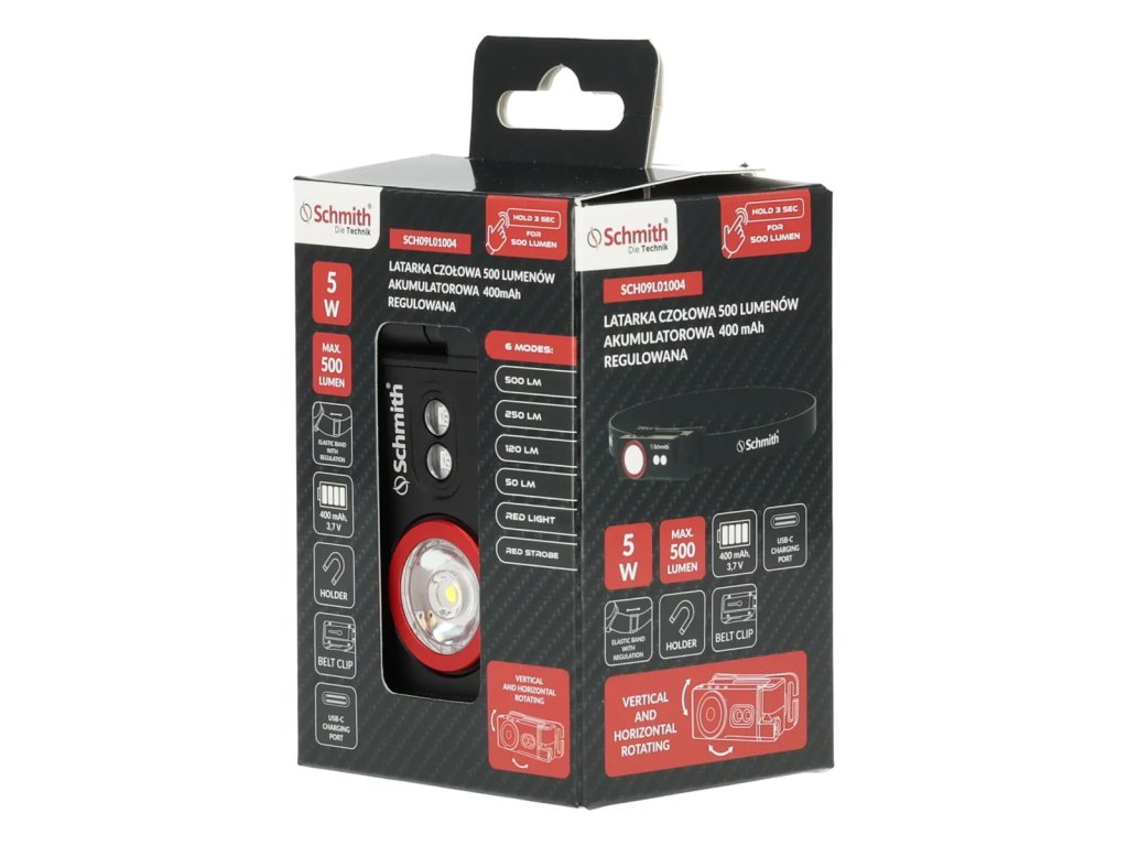 Akumulatorowa latarka czołowa 500lm 400 mAh Schmith