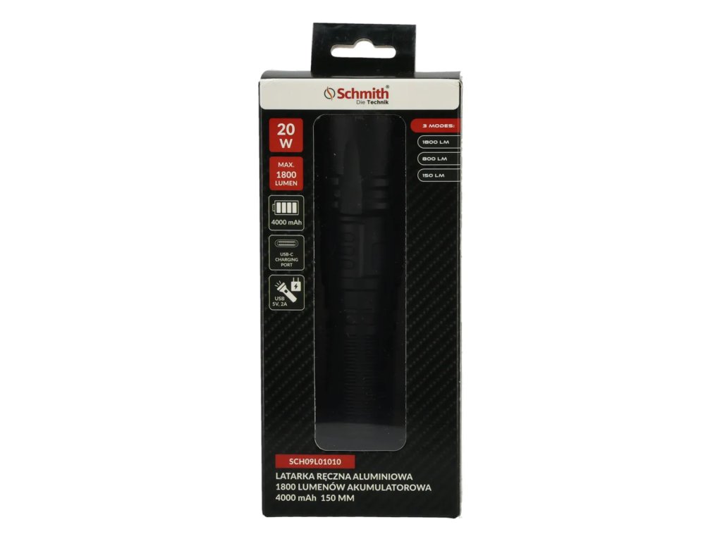 Akumulatorowa, aluminiowa latarka ręczna 1800lm 4000mAh Schmith