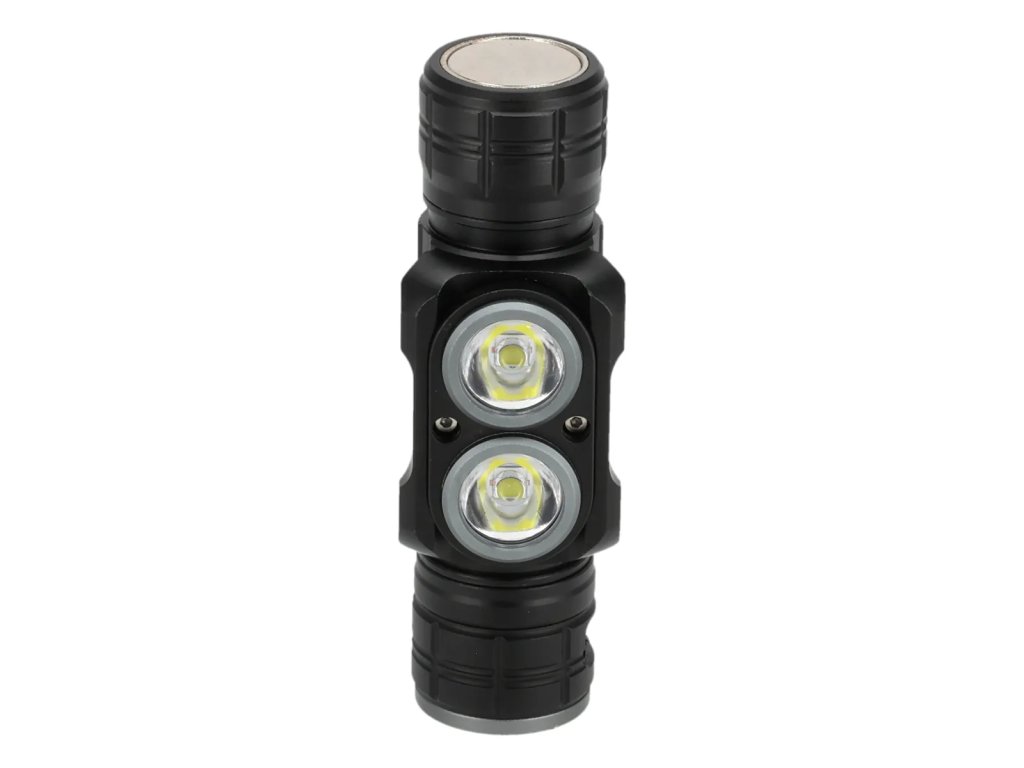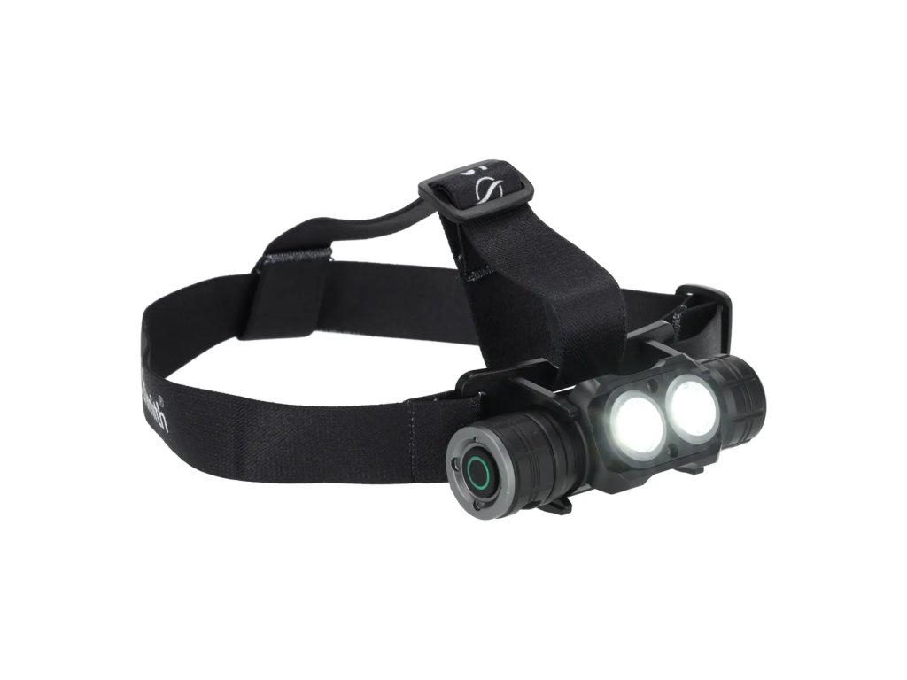 Latarka czołowa zasilana akumulatorowo, posiadająca cztery tryby świecenia. Wyposażona w elastyczne i regulowane paski. Może służyć również jako latarka ręczna, posiada magnetyczne przyłącze łączące źródło światła z paskiem.