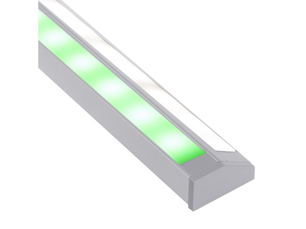 Profil NEOLINE je povrchový hliníkový profil pro dvě LED pásky, které svítí v různých směrech. Je vhodný zejména jako podskříňkové osvětlení – díky svícení pod úhlem pomáhá rovnoměrně rozložit světlo a vytvořit dvě světelné linie (např. na pracovní desku a na stěnu/dekor).