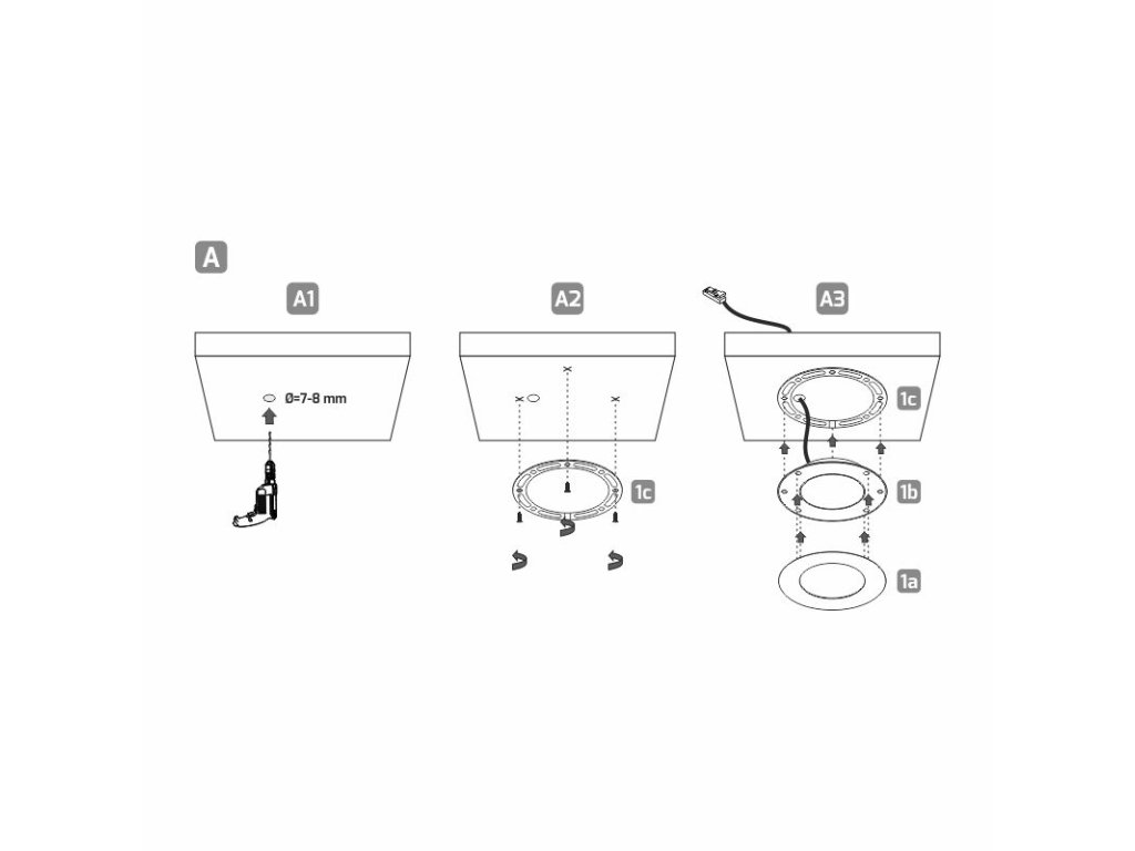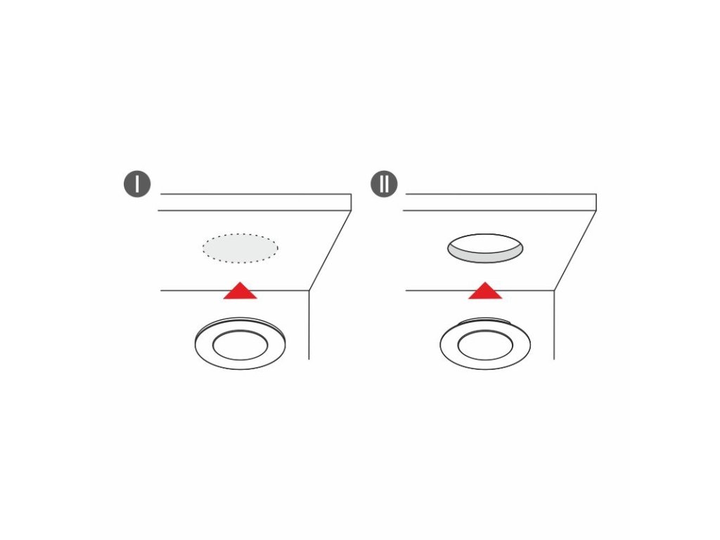 - Montáž dvěma způsoby: přisazeně nebo zápustně (výřez Ø45 mm).